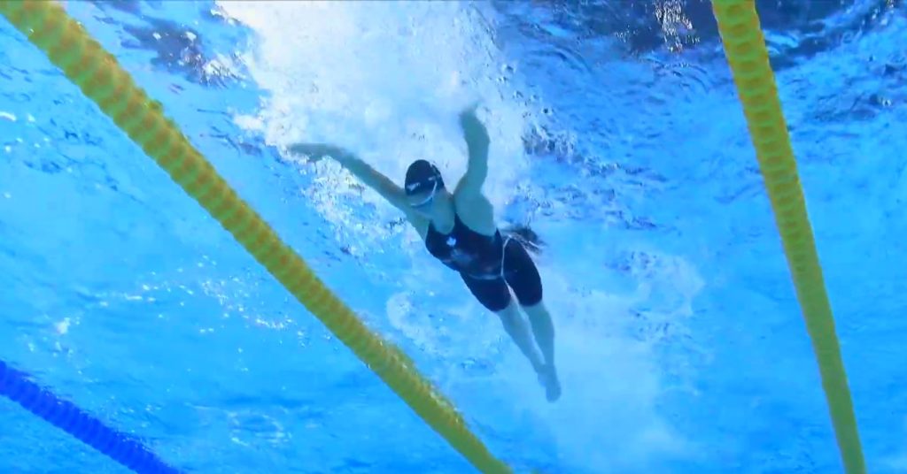 她的终极武器是快速的划频和高效的划幅,当臂展的优势结合超强的划水频率,强大的初速度表现就顺理成章了。