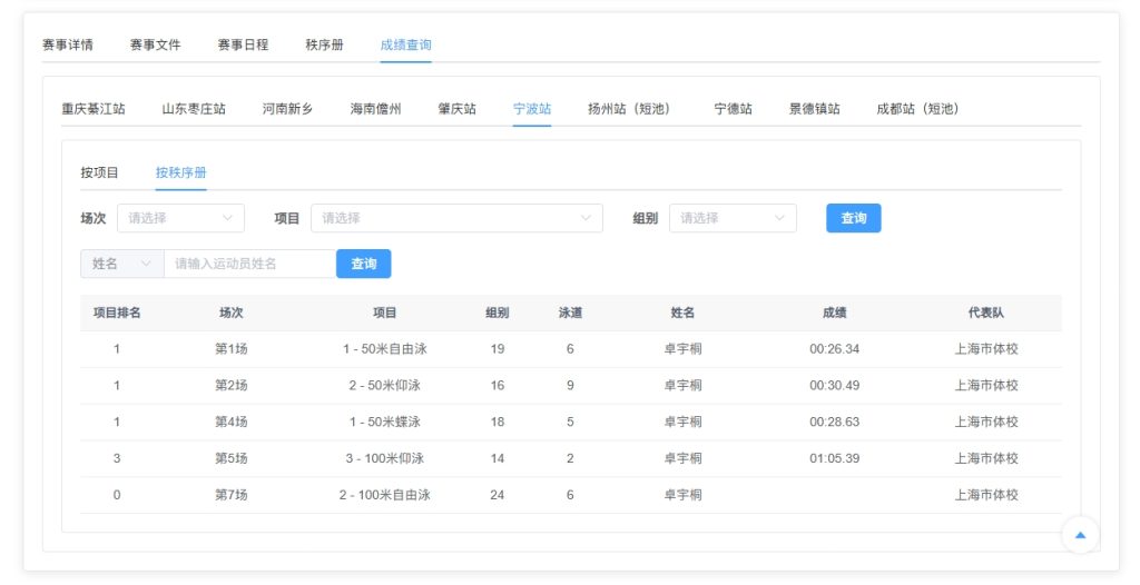 回到另一块优秀的青少年训练区域上海游泳,卓宇桐一位在宁波站中短距离游泳项目中的佼佼者。