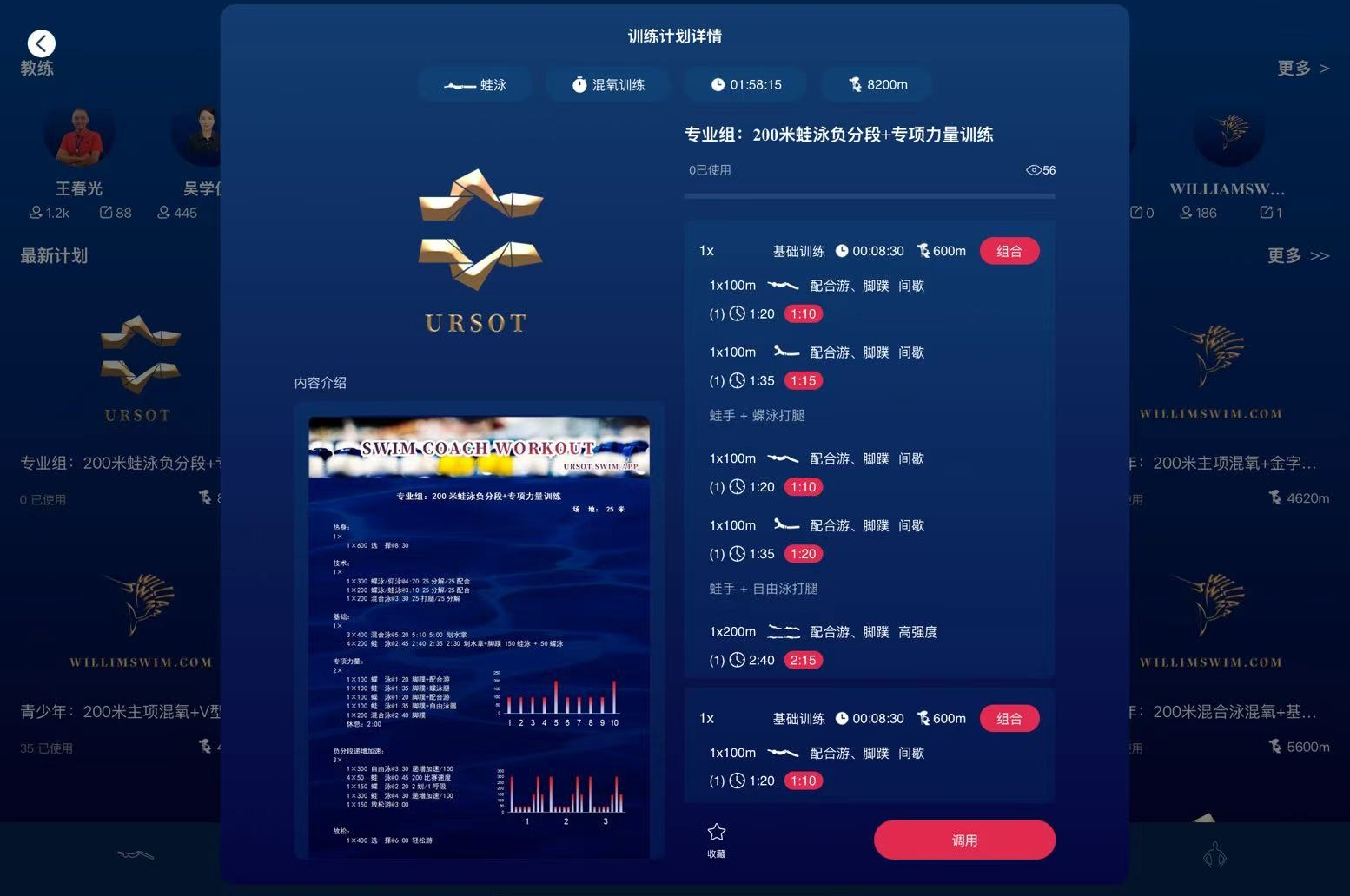 URSOT游泳运动训练系统,现已收录本套训练教案,欢迎游泳教练员、游泳爱好者、运动员下载,用于训练参考。