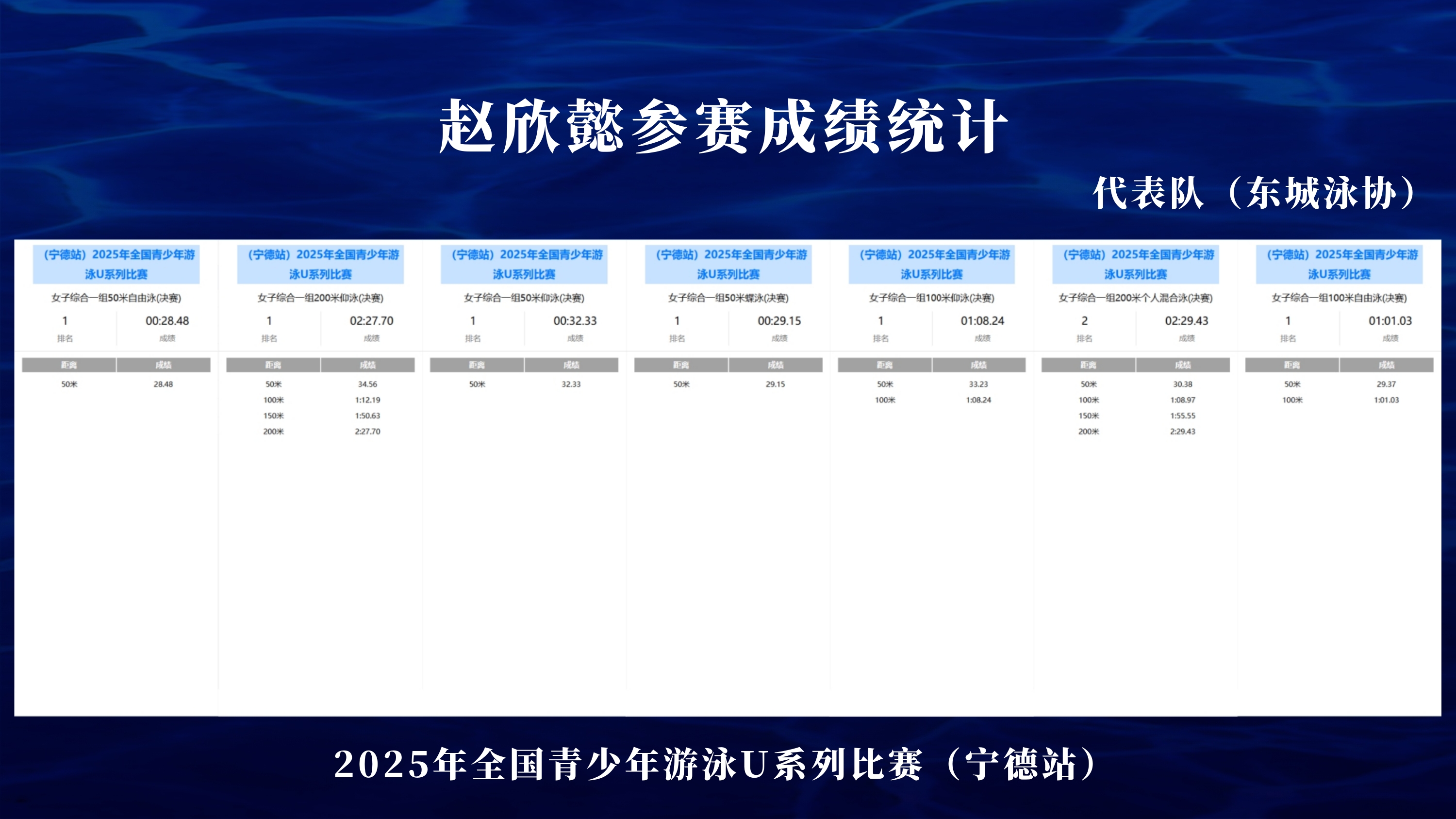 赵欣懿,这位来自东城泳协代表队的小选手,在仰泳和自由泳项目表现突出,在还没有全部完赛的情况下。