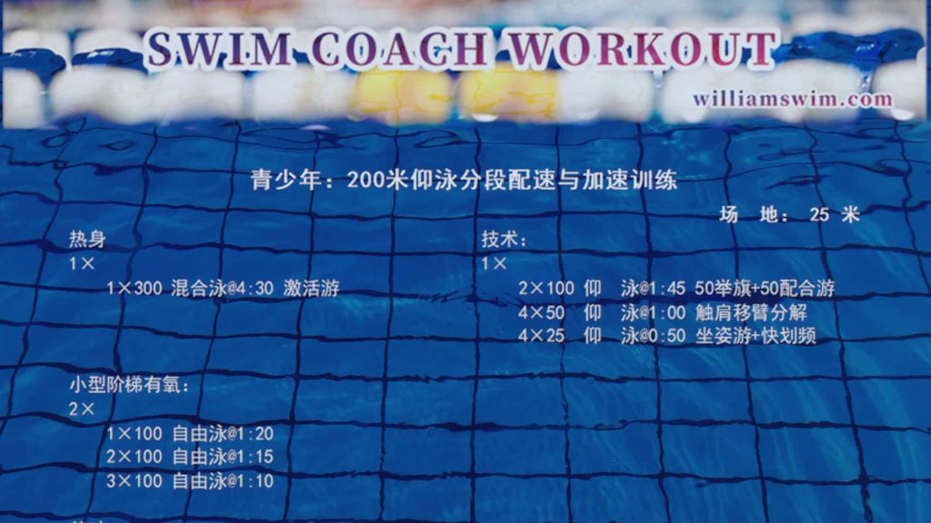 这是一组针对竞技游泳训练需求的200米仰泳专项训练计划,常用于具有多年训练基础的青少年仰泳选手。