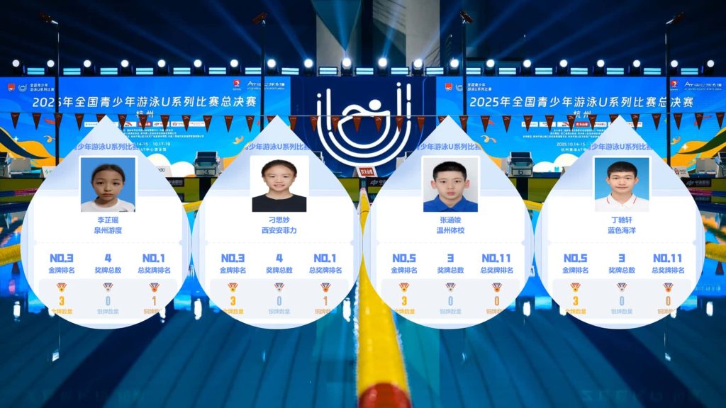 10月15日晚,随着最后一位选手触壁完成比赛,2025年全国青少年游泳U系列比赛总决赛(杭州),U9、U10、U11、U12的4个组别的比赛全部结束,62个项目的金牌全部产生。