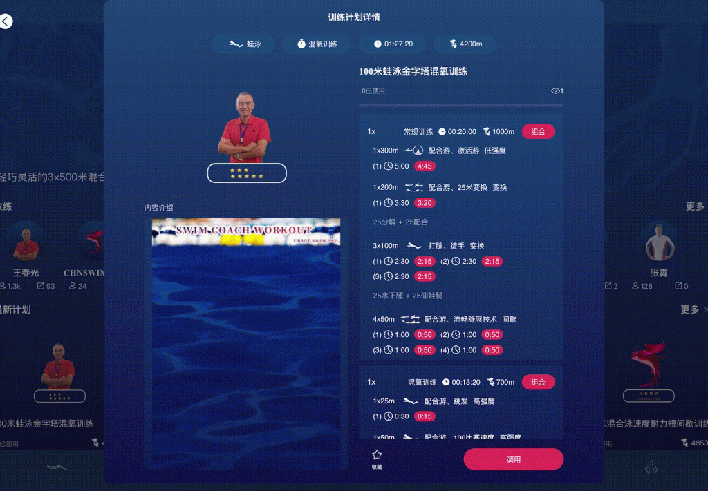 URSOT游泳运动训练系统,现已收录本套训练教案,欢迎游泳教练员、游泳爱好者、运动员下载,用于训练参考。