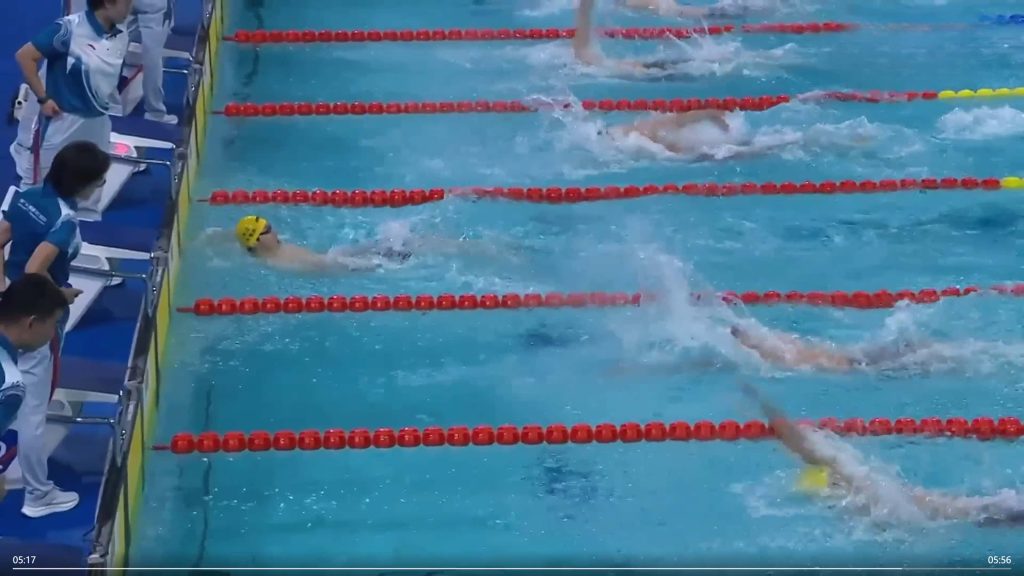 进入第三个50米后,张展硕强大的训练能力开始显现,26.94、26.71的50米分段配速,迅速杀出,最终以1.10秒的绝对优势,收获个人项目的第二枚金牌。