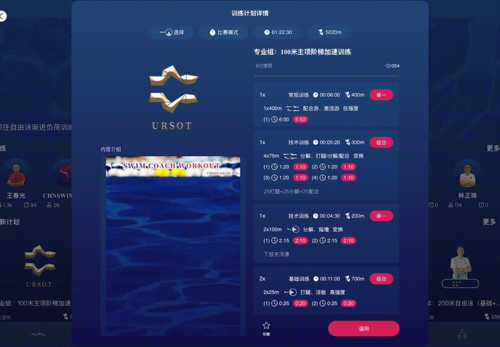 URSOT游泳运动训练系统,现已收录本套训练教案,欢迎游泳教练员、游泳爱好者、运动员下载,用于训练参考。