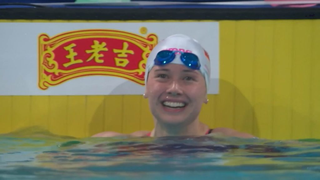 香港选手何詩蓓续写夺金之旅,直面杨浚瑄、程玉洁的挑战,以0.66秒的明显优势顺利摘金。