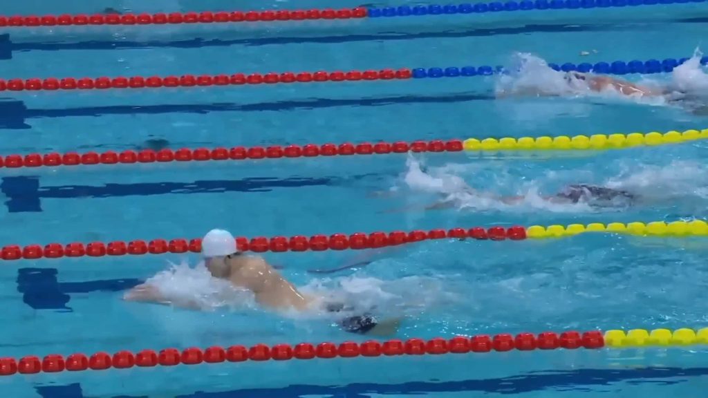 第三棒开始了,浙江潘展乐实现反超,领先0.47秒。