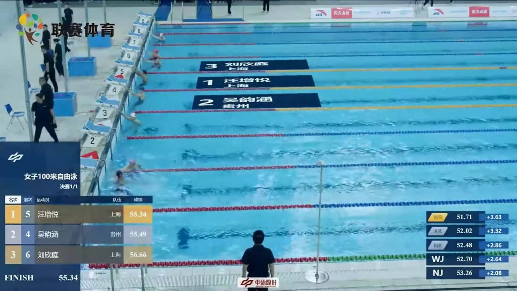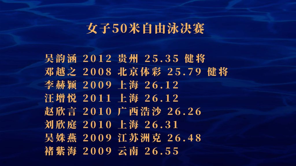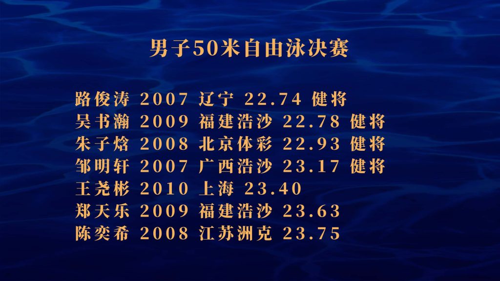 路俊涛22.74、吴书瀚22.78、朱子焓22.93,对照全运会男子50米自由泳进入半决赛标准的23.00成绩,他们三人的成绩,都可以跻身在这个项目前16位。