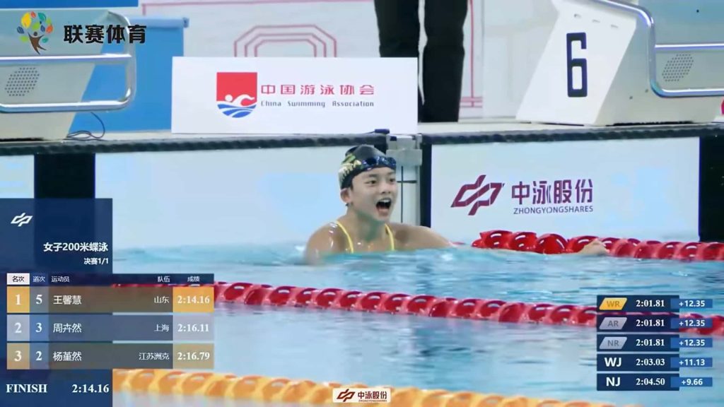 王馨慧 2012出生,女子200米蝶泳决赛,02:14.16,一个让专业人士眼红的好成绩。