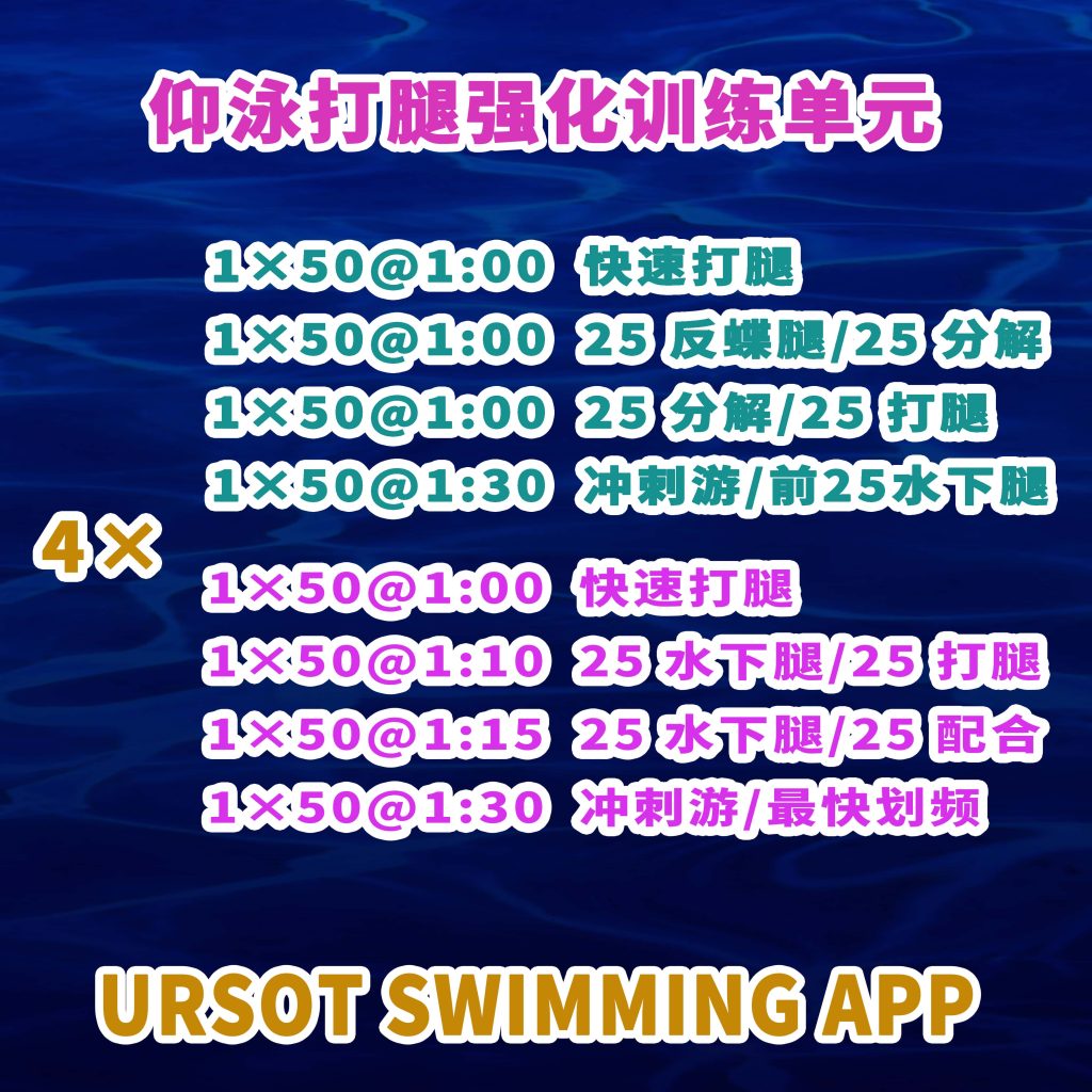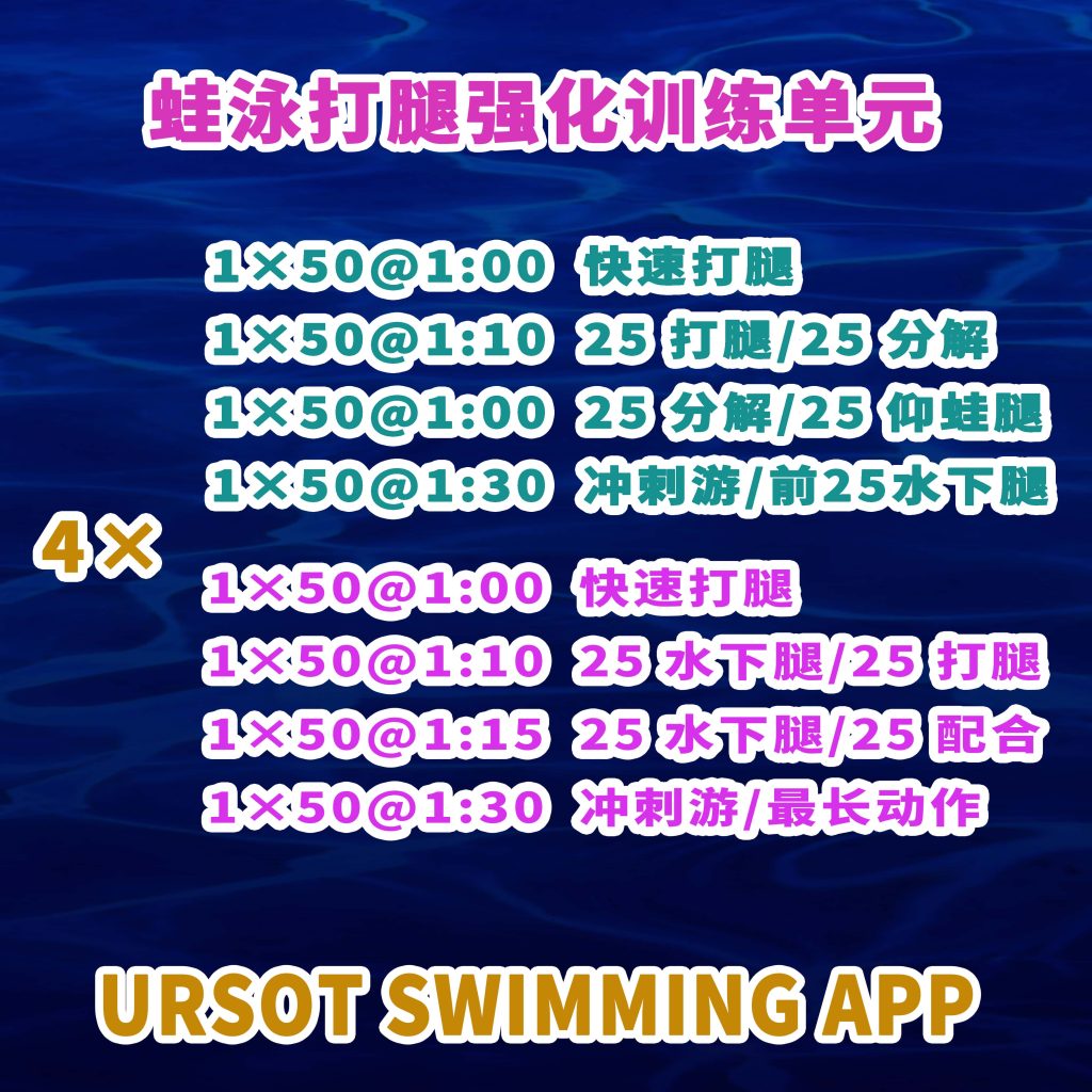 为保持稳定的打腿训练状态,在每轮8×50米的训练单元结束后,建议进行2-3分钟的休息,再进入下一轮的练习。