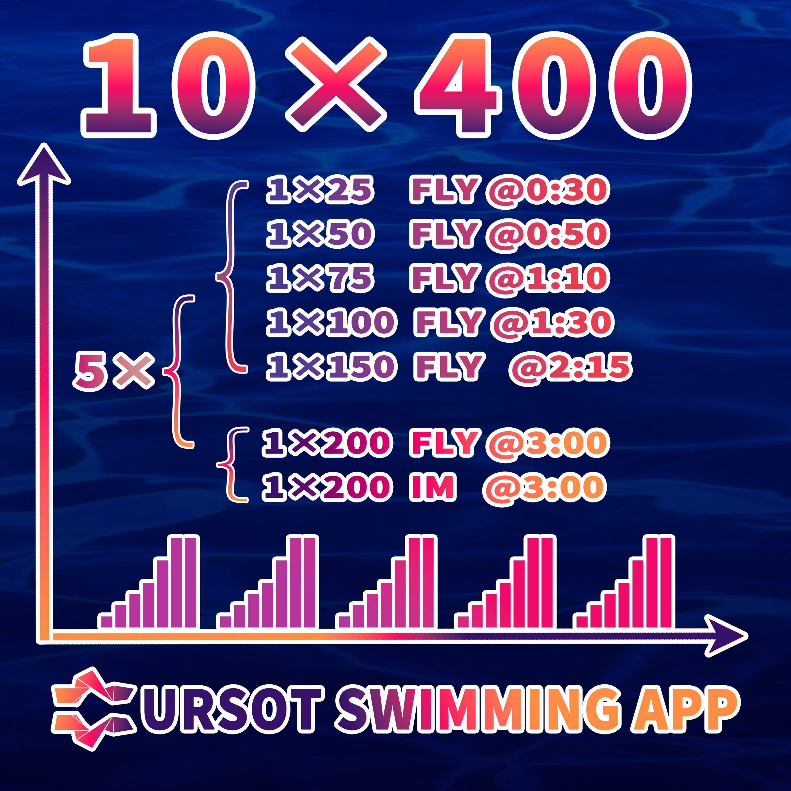 5×(2×400)小阶梯蝶泳训练,每一轮由200米混合泳做收尾,总体要求以短间歇+巡航游速为基础。