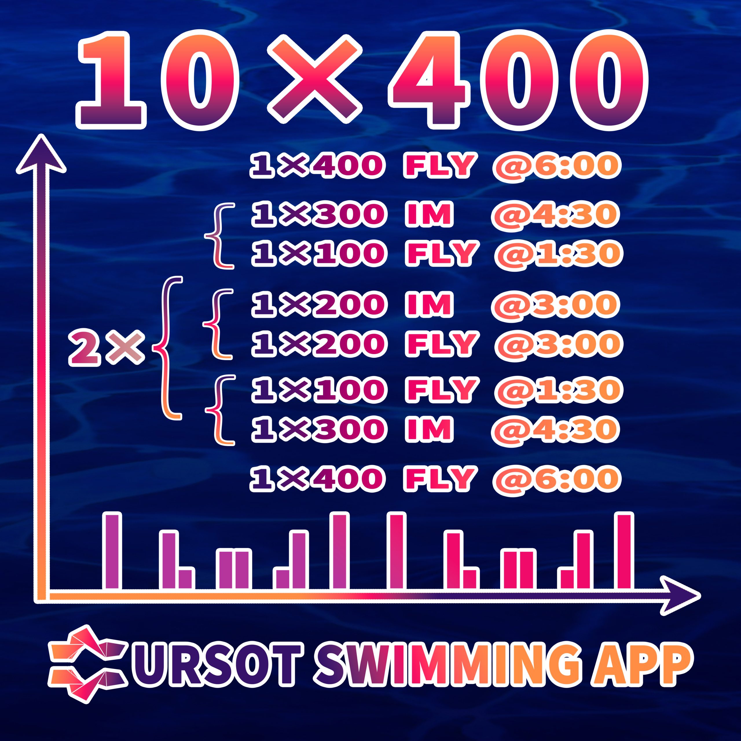 2×(5×400)V型重复训练,以蝶泳与混合泳交替进行,包括4×400米蝶泳的完整练习距离。