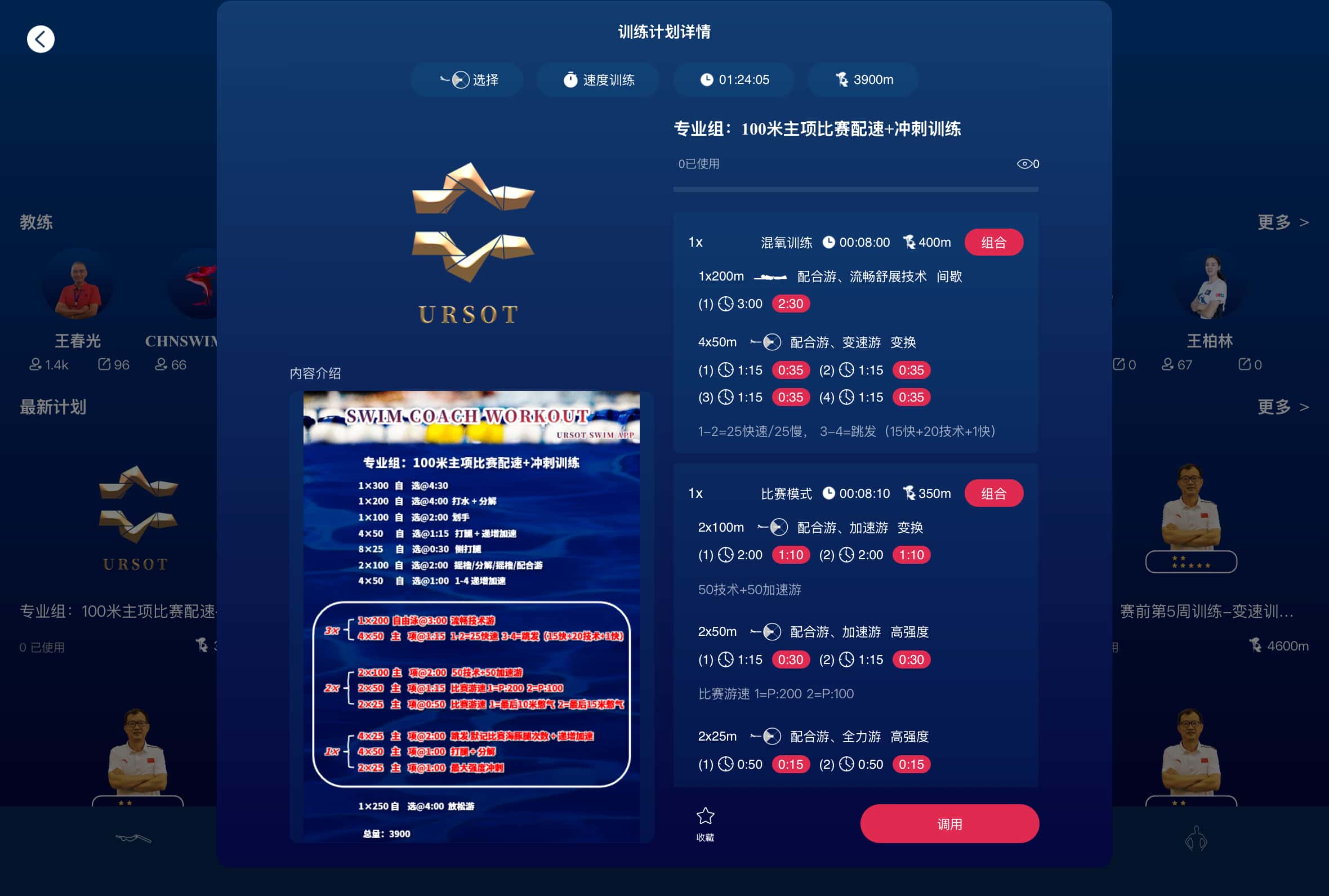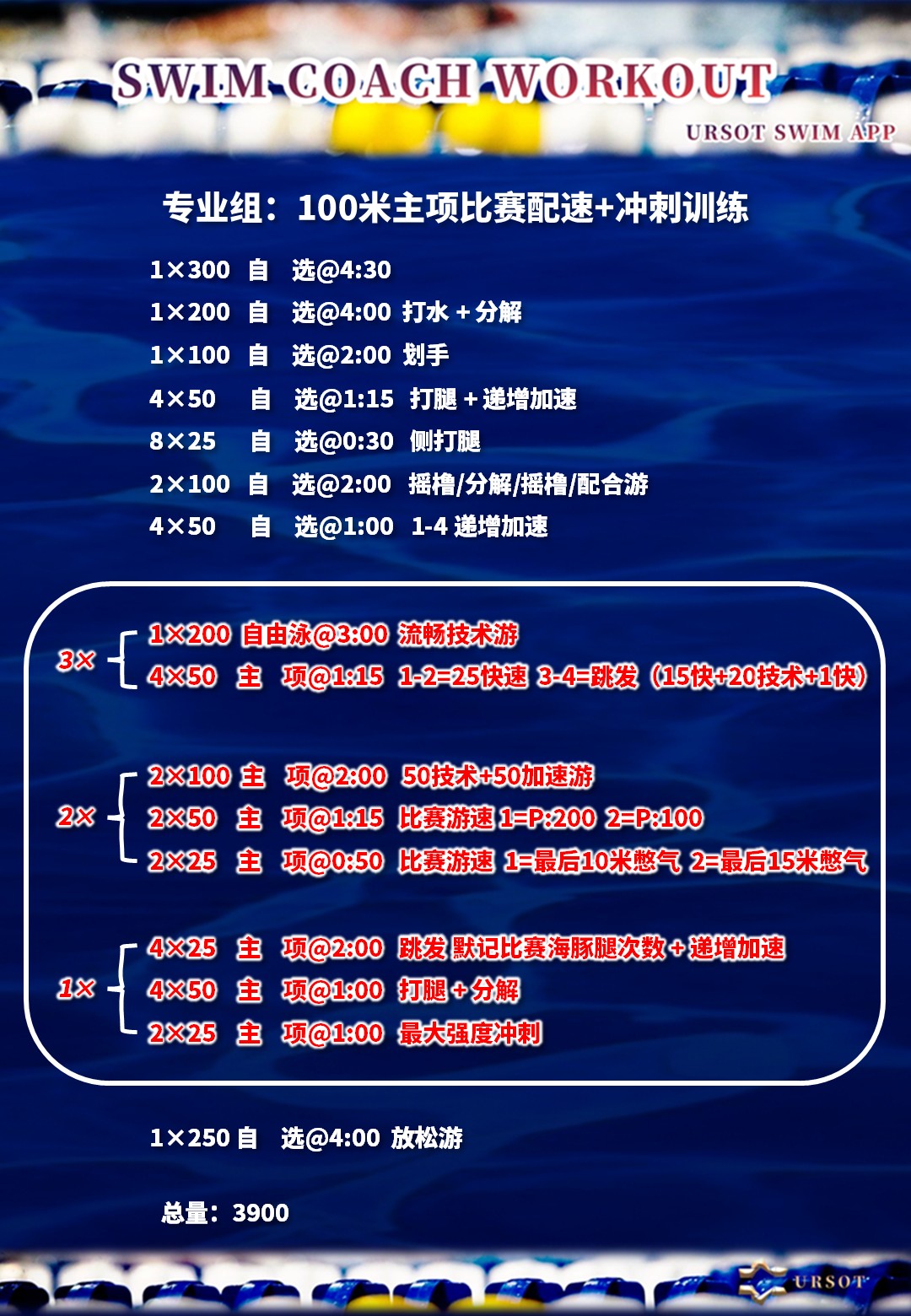 URSOT游泳运动训练系统,现已收录本套训练教案,欢迎游泳教练员、游泳爱好者、运动员参考调用,用于训练工作。