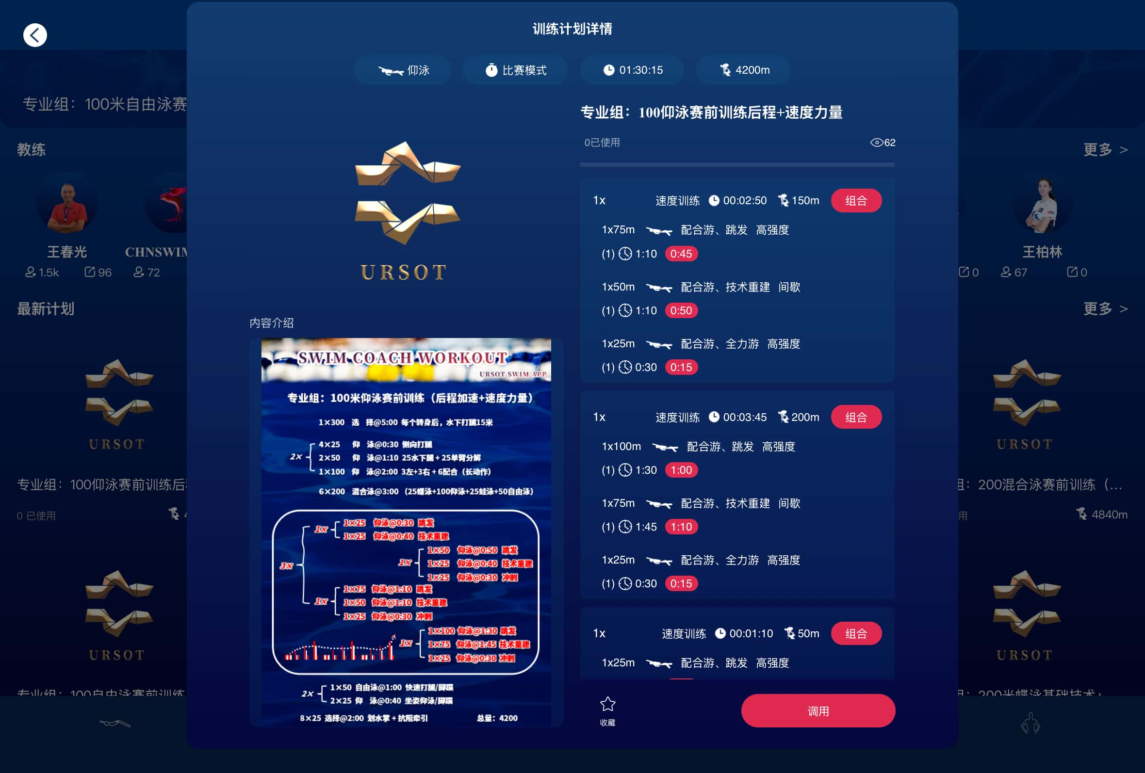 URSOT游泳运动训练系统,现已收录本套训练教案,欢迎游泳教练员、游泳爱好者、运动员参考调用,用于训练工作。