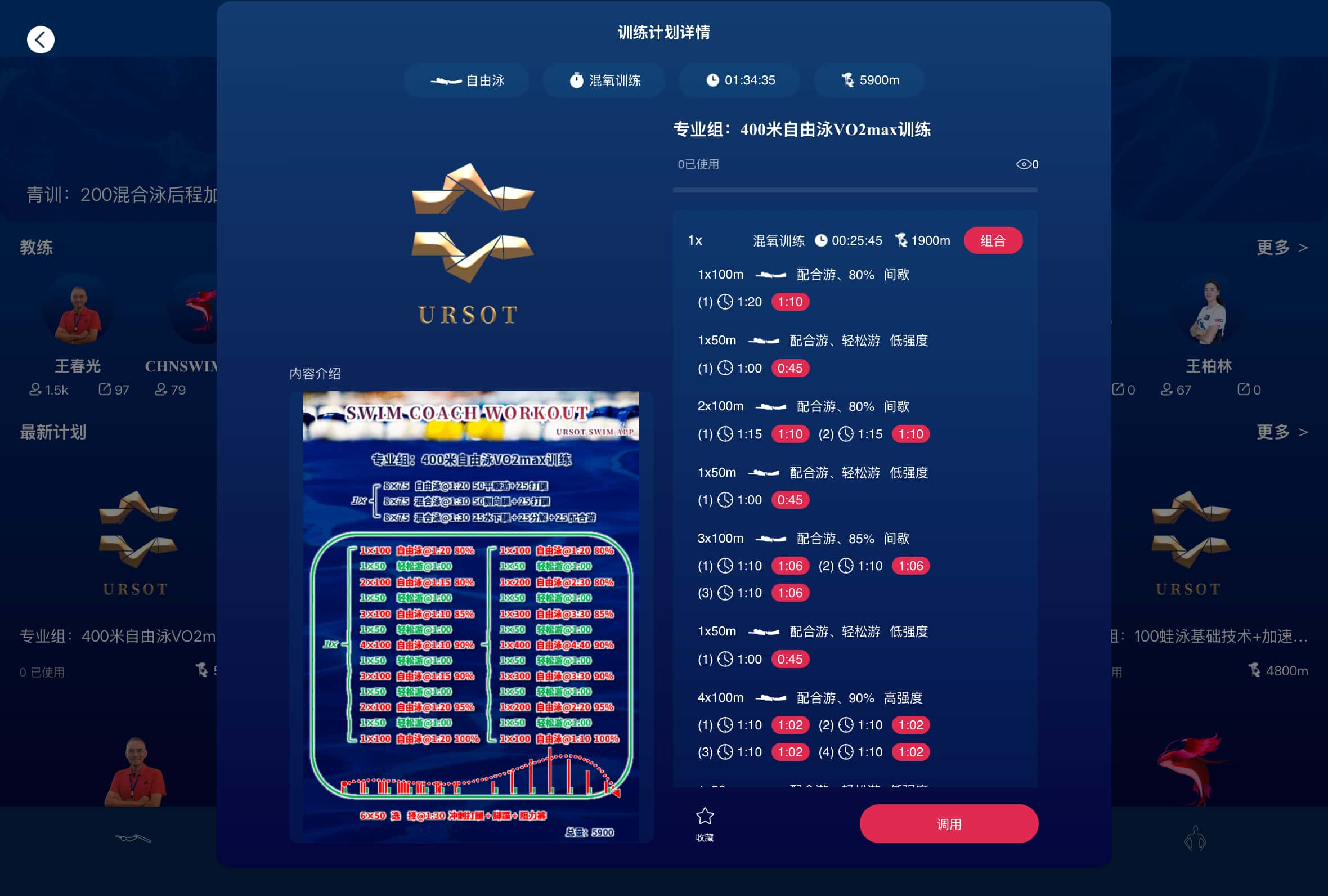 URSOT游泳运动训练系统,现已收录本套训练教案,欢迎游泳教练员、游泳爱好者、运动员参考调用,用于训练工作。