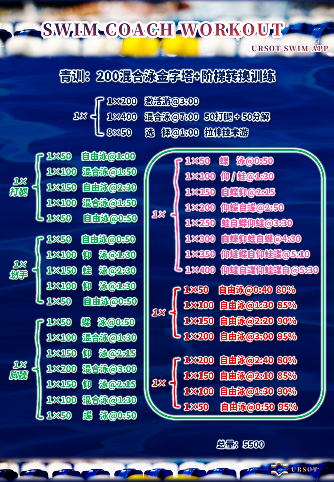 URSOT游泳运动训练系统,现已收录本套训练教案,欢迎游泳教练员、游泳爱好者、运动员参考调用,用于训练工作。